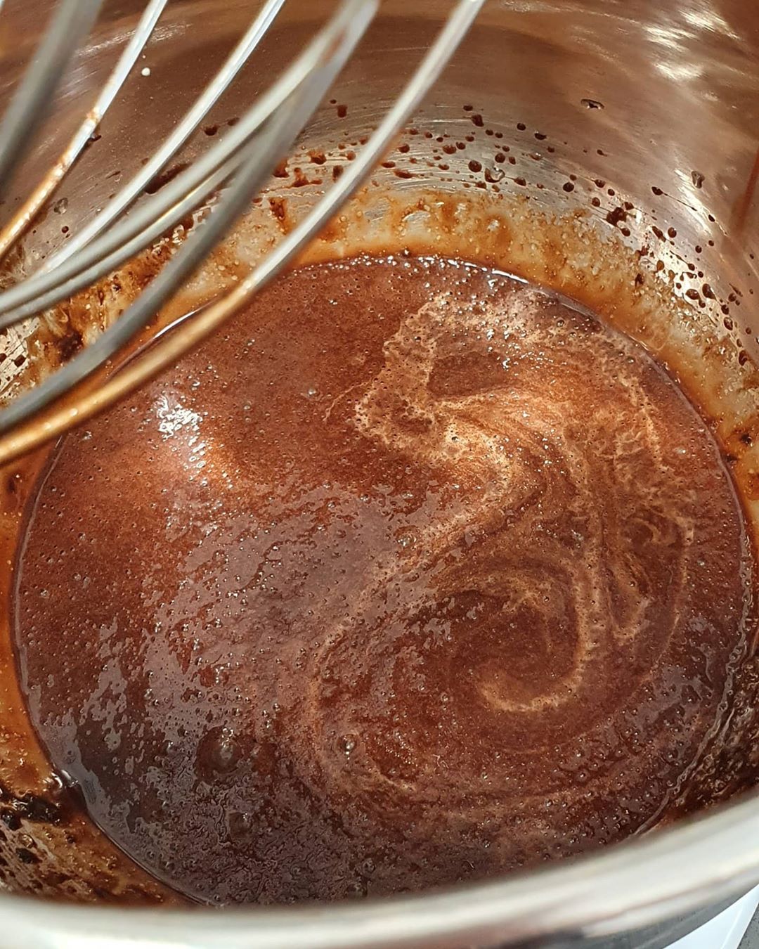 درت الكريمة السائلة في كاسرول على درجة حرارة مهيلة حتى سخنات مزيان و قبل ما تغلي زدت عليها الشوكولا و حركت مزيان