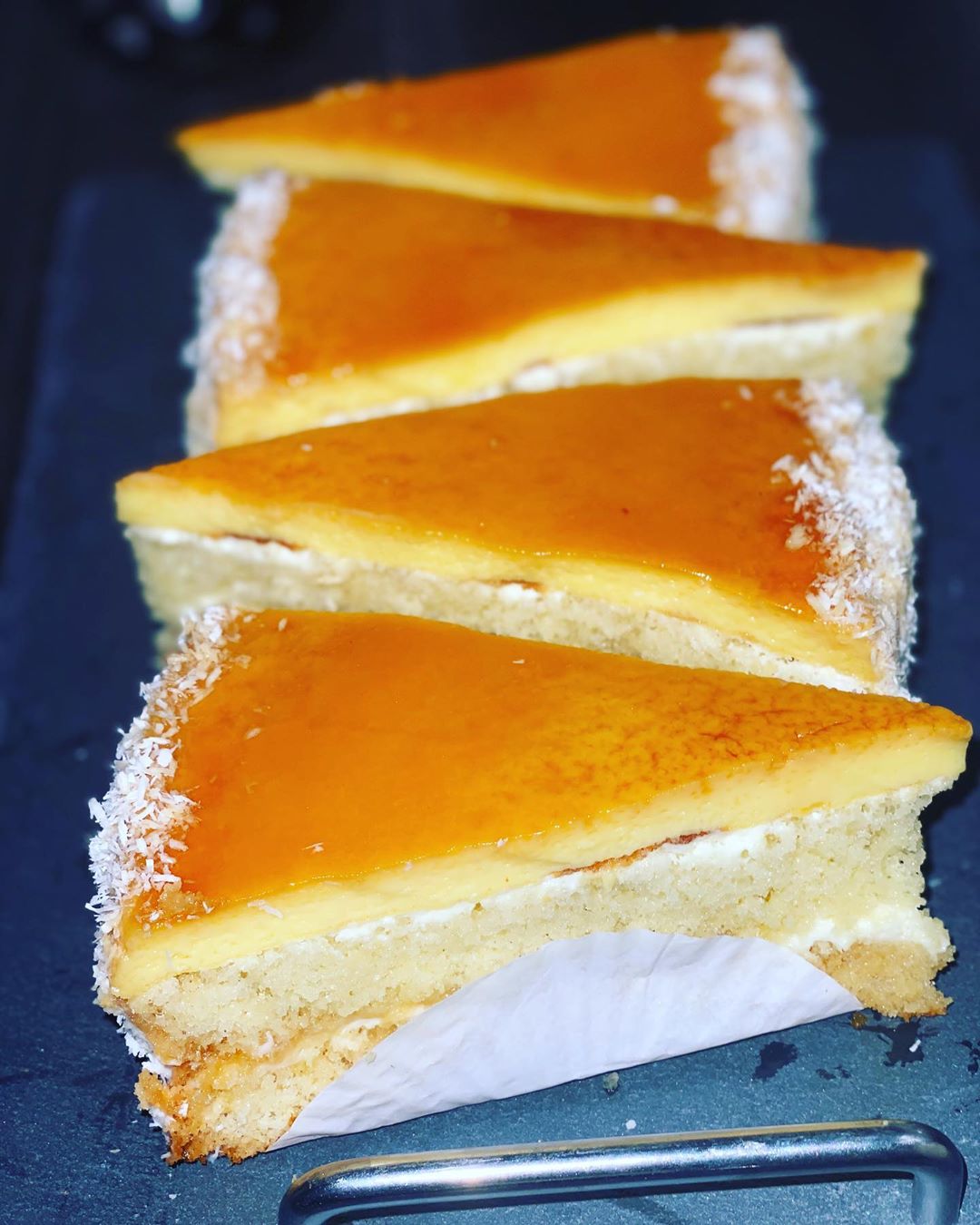 وكندخلى الثلاجة تبرد شوية من بعد كنقلبا فطبق التقديم و كيجي الفلان هوا الفوقاني وكندهنلا الجوانب ب الكريمة ونرش عليها الكوك وكنقطعا مثلثات