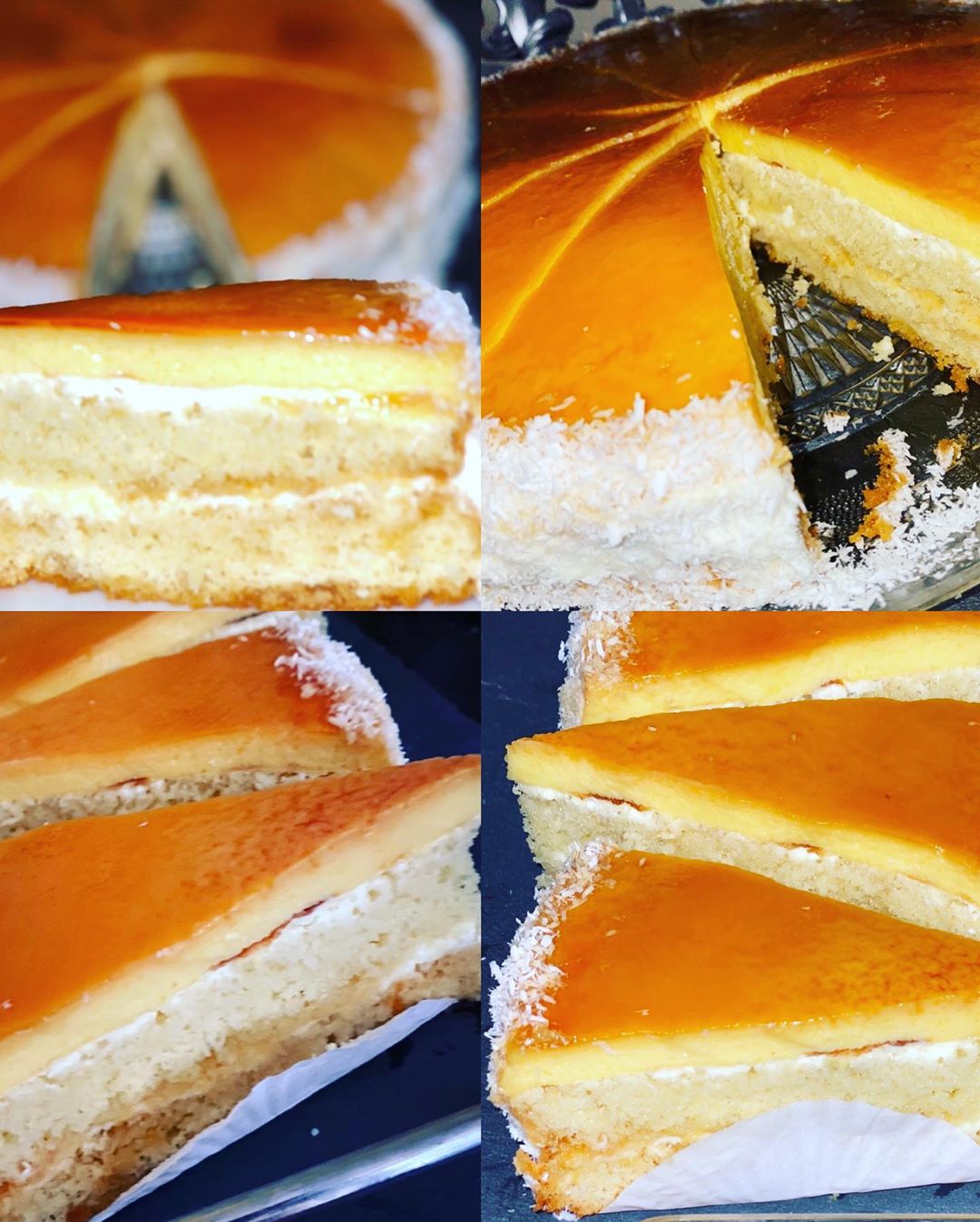 كنخلط كلشي بالخلاط اليدوي وكنخويه فوق الكراميل ضروري الكراميل يكون يابس وكنعمل القالب فواحد الصينية فيها الماء (حمام مريم) وكندخلو الفران يطيب نصف ساعة