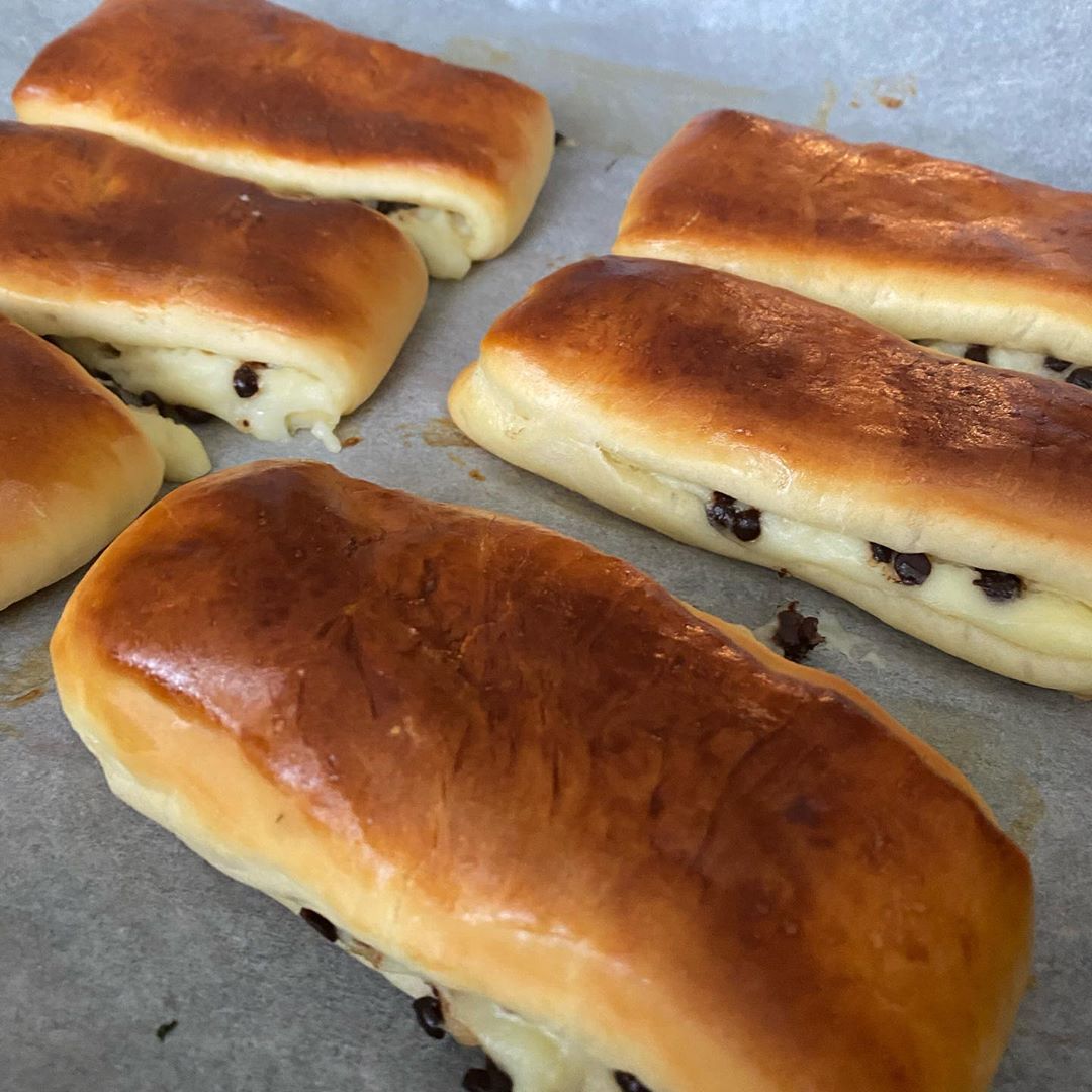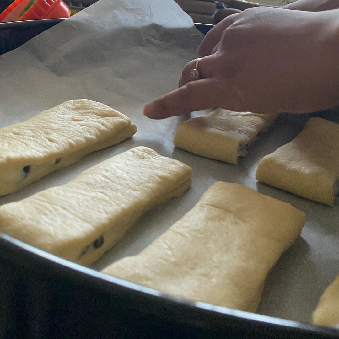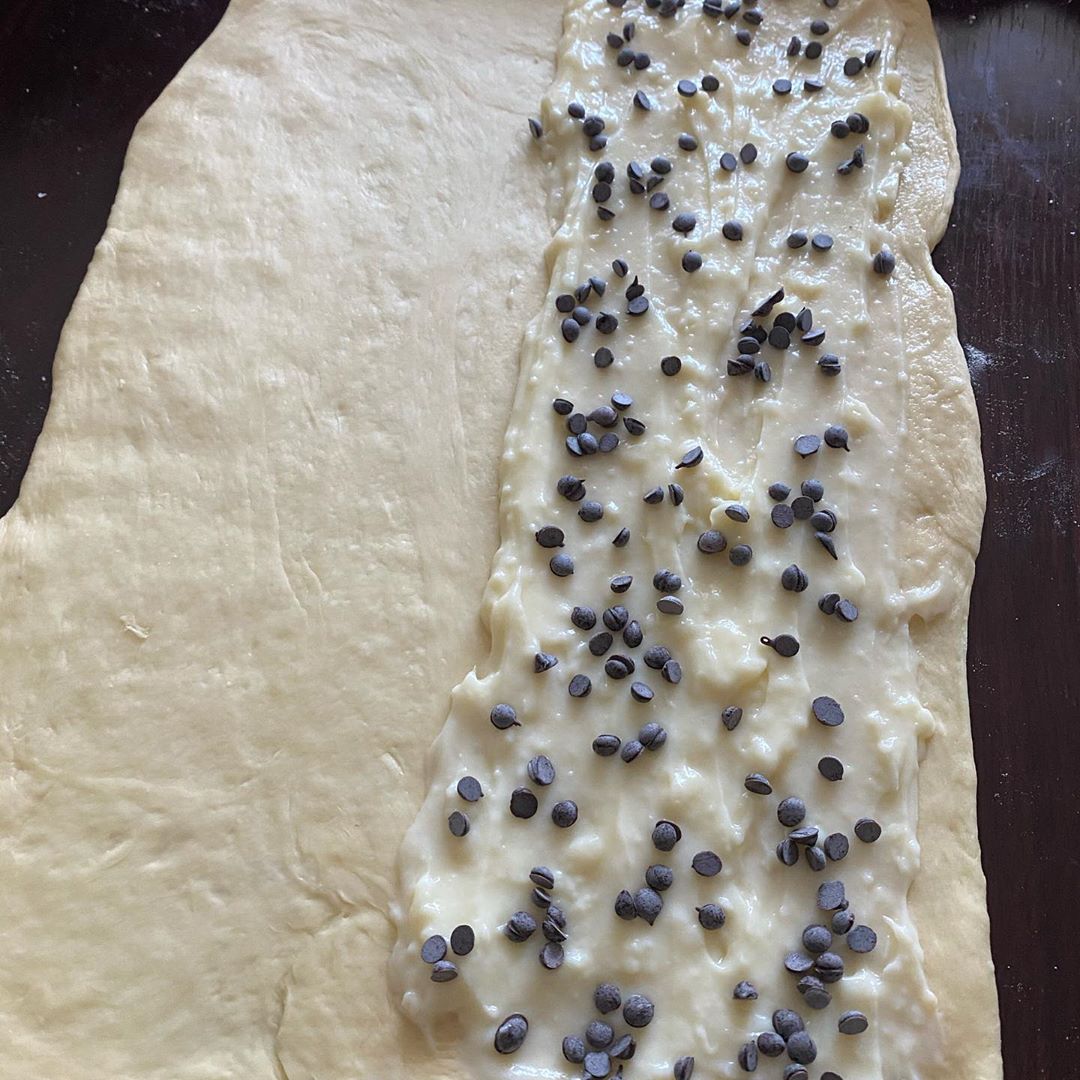 طلقت العجينة مستطيلة وعمرت الكريم باتسيير وذهنتا في نصف المستطيل في الحاشية خليت غير شوية في الطرف ماش يلصق فيه الطرف الي عنغطيو بيه