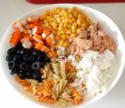 و عند التقديم تزين سلطة المعكرونة بالمايونيز