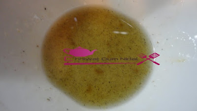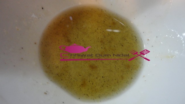 نمزج الزيت مع الملح و الابزار و سكنجبير ثم ندهن به اللحم جيدا ( و أرسلت الطبق لطهيه في فران الحي كيجى محمر أحسن و لذييذ جدا)