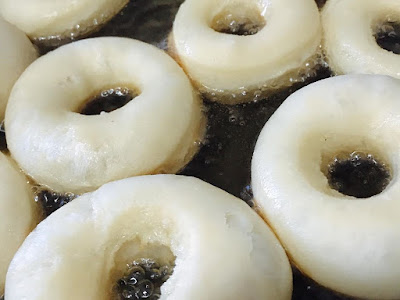 نتركها ترتاح ربع ساعة فقط ونقلي الدونات في زيت ساخن على حرارة معتدلة