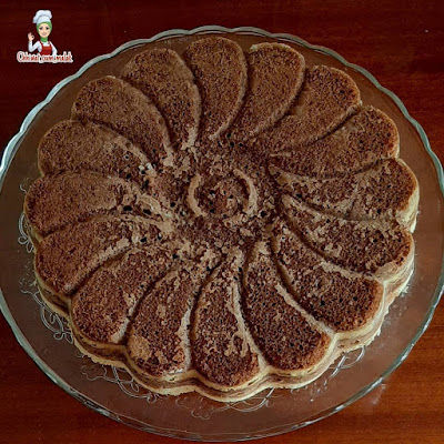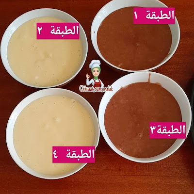 نخويو فوق منها الطبقة الثانية نطفيو الفرن من التحت ونخليو الفرن مشعول غير من من الفوق وندخلوها الفرن 7 دقائق نزيد طبقةالكاكاو و ندخلوها للفرن 7 دقائق ثم الطبقة الاخيرة هي ديال فاني
