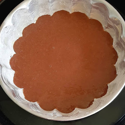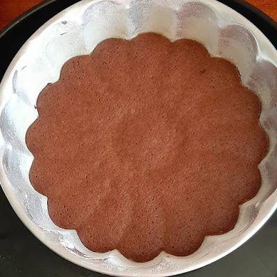 ندهن المول ندرو طبقة الأولى بالكاكاو ونطيبوها 7دقائق ونخرجوها