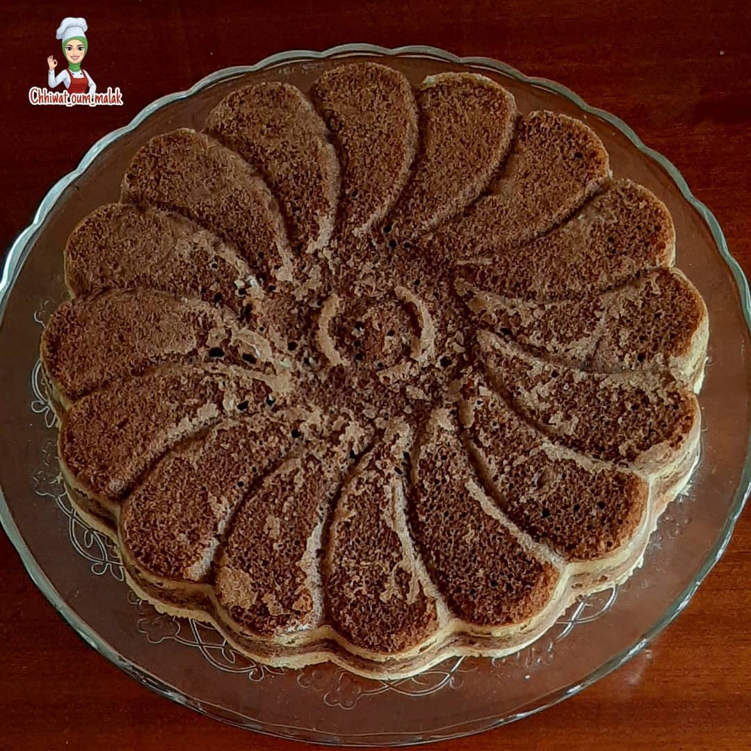 في اناء نخلط البيض،رشة ملح،سكر و فاني جيدا حتى يطلع ويتكاثف حجم البيض نضيف الزيت والحليب منخلطوش بزاف باش ميطحش لينا البيض نضيف الدقيق والخميرة ونقسمو الخليط الى نصفين واحد نضيفلو ليه كاكاو ونخلط مزيان ادى حسينا بيه تقال نضيف ليه لحليب