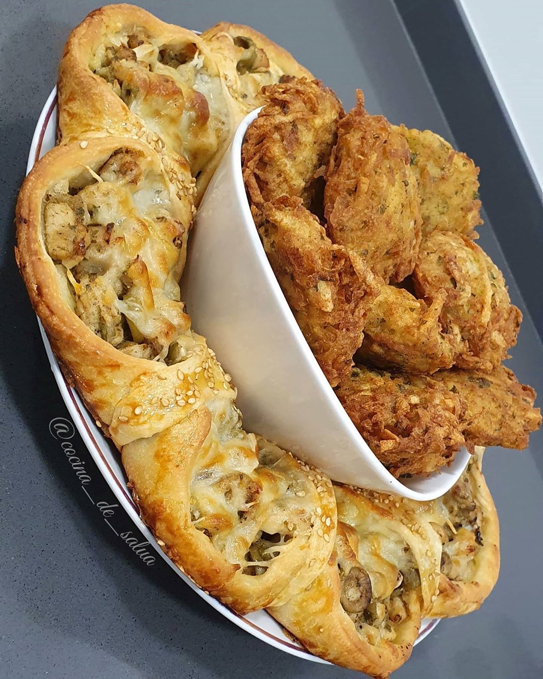 العجينة : 250غ دقيق ابيض + ابيض بيضة (نخليو الأصفر للدهن) + ملعقة كبيرة زيت الزيتون + ملح + ملعقة صغيرة خميرة فورية + ملعقة كبيرة يوغورت طبيعي