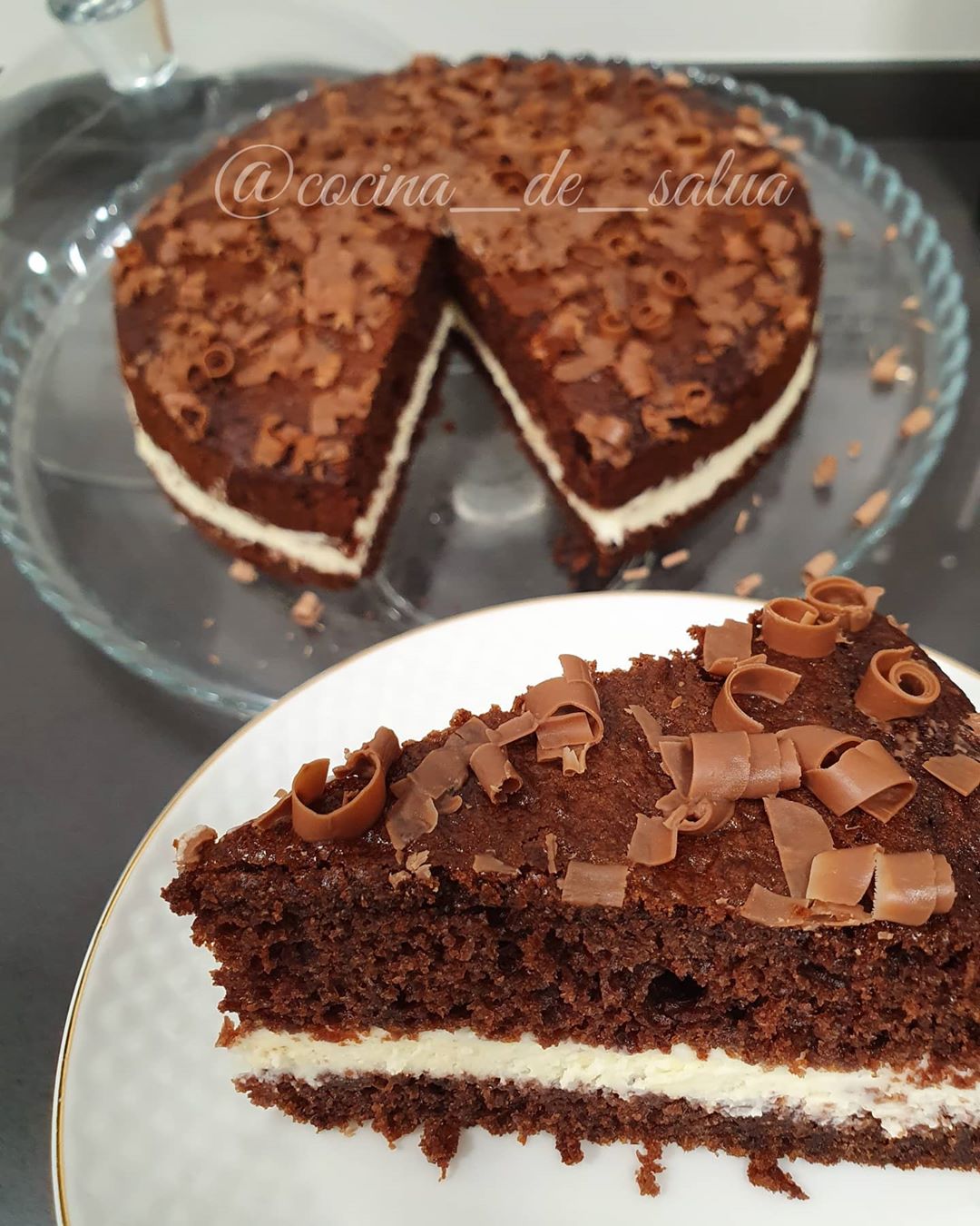 للتزين : نترك الكيكة حت تبرد جييييدا نقسمها الى نصفين و نضع كريمة الشانتيي في الوسط ممكن سقي الكيكة قبل وضع الكريمة