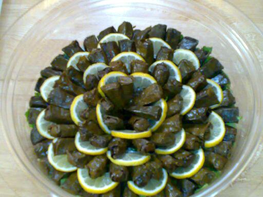 - 2- نحضر ورق العنب المسلوق ونضع بوسط الورقه القليل من الكفته ما يعادل الملعقه .