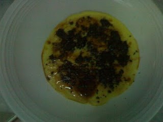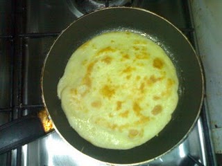 ثم تسخن المقلاة اصغر حجم (حق بيضة وحدة) نصب مقدار من الخليط في المقلاة ويحمر من الجهتين