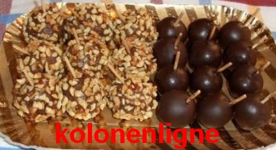 - أما النصف الثاني نخلطه مع نوتيلا ونمرروه في الشوكلاط المذوب والكاوكاو المهرمش