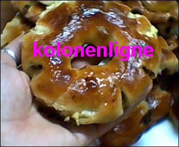 ثم نصففها في صينية الفرن و ندهنها بأصفر البيض ثم ندخلها لفرن ساخن