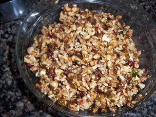- الحشوة100غ اللوز مصلوق ومقلى100غ كركاع محمص100غ أكاجو محمص100غ بندق محمص100غ زبيب100غ و الفواكه المعسلة المعلبة و العسل قليل من شكلاط أبيض