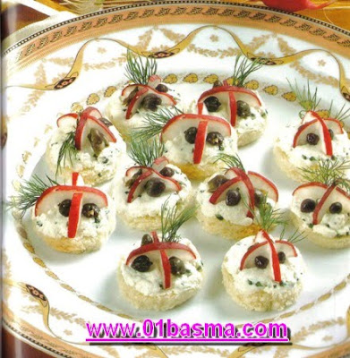 تزين بالزيتون و أوراق الشبت أو المقدونس