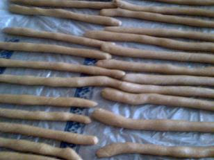.تشكل العجينه على هيئة اعواد طويله مثل لي في الصورـ