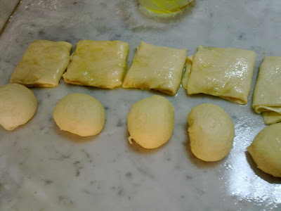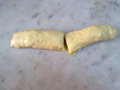 نلفها على نفسها و نقطعا الى نصفين بالسكين كما في الصورة