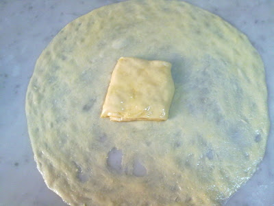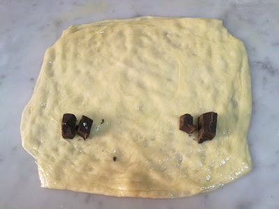 نبسطها بالزبدة و نضع الشكلاط كما في الصورة