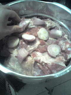 ، نضيف اليه الابزار و الكمون و الملح و نخلطوهم جيدا و من بعد نضعهم في الصفاي الطنجرة