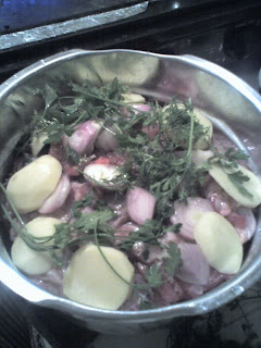 و نطفيوا نشوفو اللحم واش طاب الا كان مازال شاد شوية نشوفوا الماء واش باقي في القاع ديال الطنجرة و نعاودوا نزيدوا 45 دقيقة تقريبا