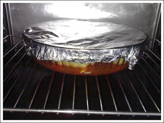 غطيها بالالومنيوم ثم ادخليها الفرن وتترك حتى تشرب ماءها وتستوي