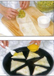 نلصق اخر الشريط باصفر البيض او الخليط الدقيق و الماء