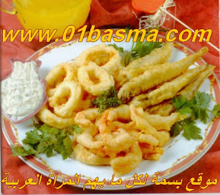 موقع بسمة يقدم طبق مشكل من السمك المقلي : الكلمار -القمرون – الميرلا
