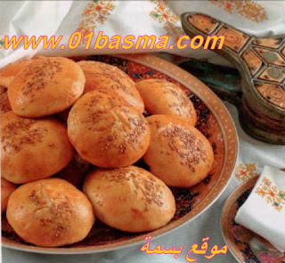 نحضر كويرات من العجين بحجم بيضة و تترك مرة اخرى لتخمر تكرص قليلا و ندهنها بالبيض و نرش عليها الزنجلان