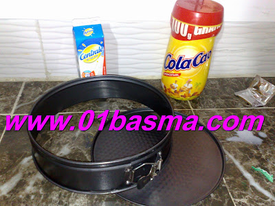 الطبقة الثالثة : نصف لتر من الحليب نضيف له كيسين من الفلون بالشكلاط و السكر حسب الذوق
