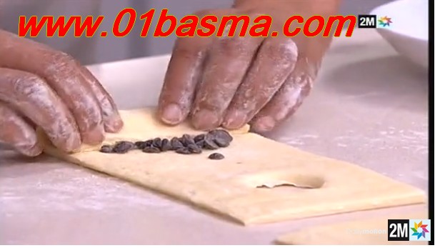 مقادير الحشو : حبيبات الشكلاط _ عجين التمر