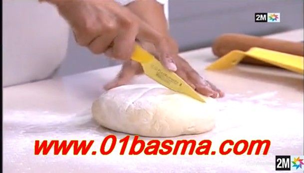 ناخد العجين نقسمها بالسكين على اربع كما في الصورة
