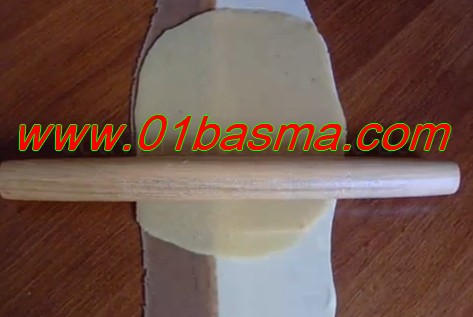 نبسط العجين نضع فوقه عقدة اللوز