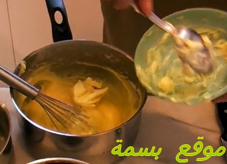بعد تجانس كل المكونات جيدا نصب الخليط في اناء و نضعه فوق النار حتى يعقاد