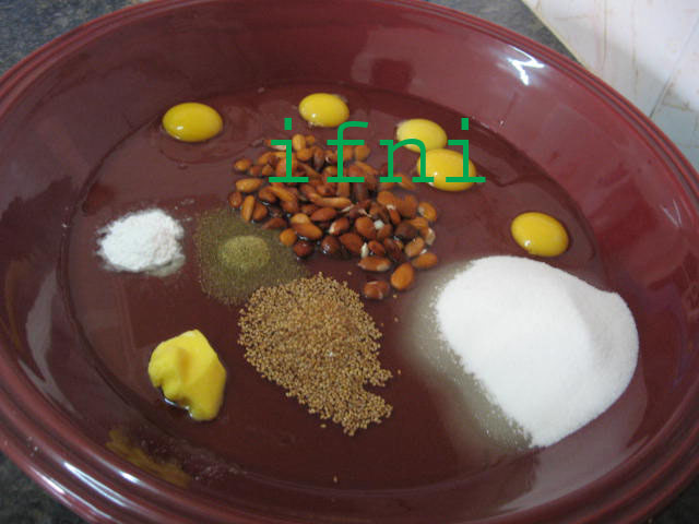 يوضع اللوز في الماء ليلة كاملة حتى لا يتكسر لك الفقاص عند التقطيع
