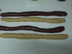 من كل لون 2 نجعل منهما أصابع طويلة ورقيقة كما