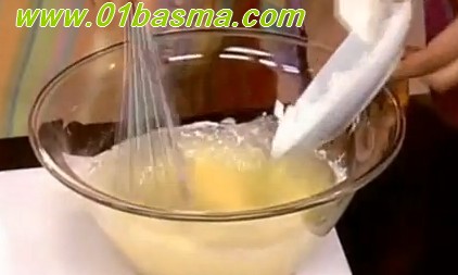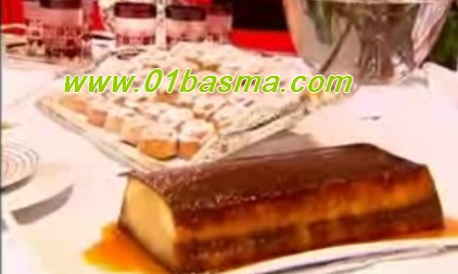 نخلط مكونات الفلون جيدا حتى الحصول على خليط متجانس و نصبه فوق الكراميل