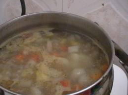 تغسل هبرة دجاج تقطع الى قطع صغيرة وكذلك الجزر و البورو ولفت تضاف إلى قطاع دجاج في طنجرة تم الكرنب وكرفس ملح ابزار بعد أن تشحر نضيف الماء وتقفل الطنجرة إلى أن يطهى الكل ..تطحن الخضار وترجع 3 دقائق فوق نار مع معدنوس