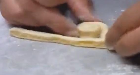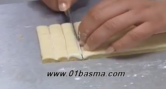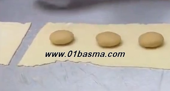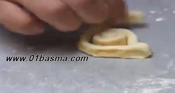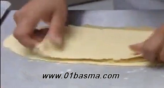 نبسط العجين ثم عقدة اللوز ثم العجين