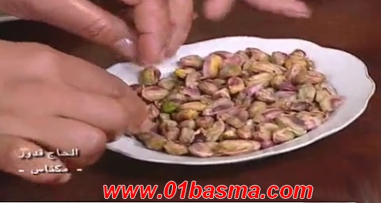 يطحن البيسطاش مع السكر و نضيف له القليل من الزبدة و ماء الزهر
