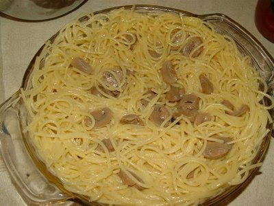 و ندخلها للفرن حتى يتماسك البيض مع سباكتي في الاسفل و تتحمر من اعلى