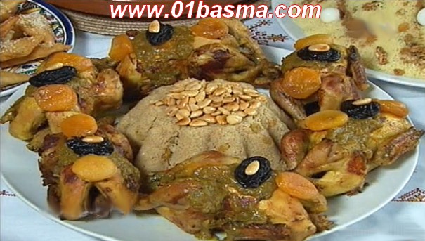 موقع بسمة لكل ما يهم المرأة العربية يقدم فراخ الدجاج بالفواكه الجافة و سفة الكسكس بالصور