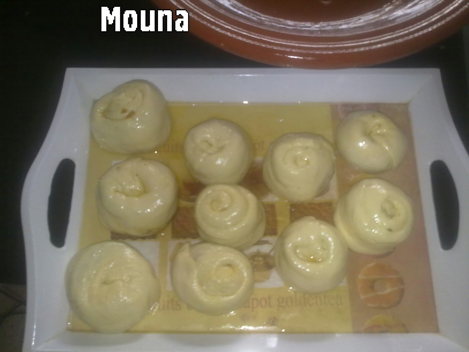 غنحول العجيين الى كريااات وكل كرية تمدد بالزيت وترش بالزبدة والسميدة وتووضع الحشوة وتطوى كما في الصورة او بحال الملوى نيييت وترش بالسميدة مرة اخرى و الزبدة وقليل فرماج محكووك لاضافة مداق اخر فقط اختياري