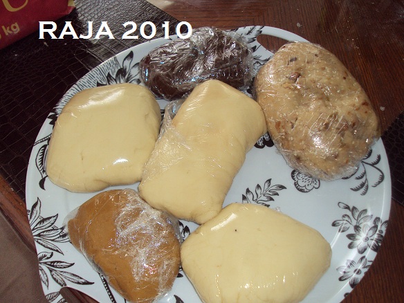 نجمع الكل ونعمل العجين ترتاح منبعد نكورها ونطبعها بقالب المعمول او حسب الرغبة