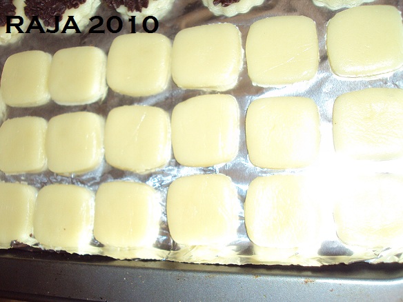 نسرح عجين عادي وتقطعو دائر نلبسو لقوالب المافن الصغار يطهى من بعد نعمرهم باللوز والكاجو وزبيب ولكرميل مخلطن ونزوق بخطوط الشكلاط