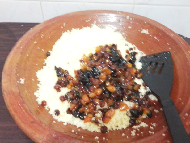 من بعد نخلطوهم مع الكسكس مزيان اللي كيبغي الحلاوة يقدر يزيد السكر