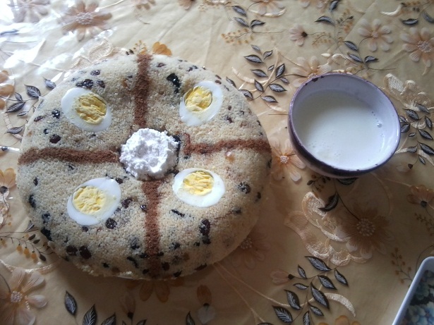 كنزينها بالسكر كلاصي والقرفة ونقدمها مع الحليب مخلط بماء الزهر