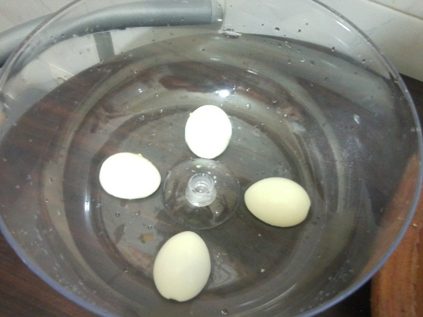 كناخدو اناء غارق كنديرو فيه 2بيضات مسلوقين ومقطعين على زوج