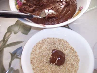 اولا في حمام مريم نذوب الشكلاط مع الزبدة على نار مهيلة بعد ان يذوب نزيله من على النار و نضيف له الزنجلان المطحون و نتركه على جنب