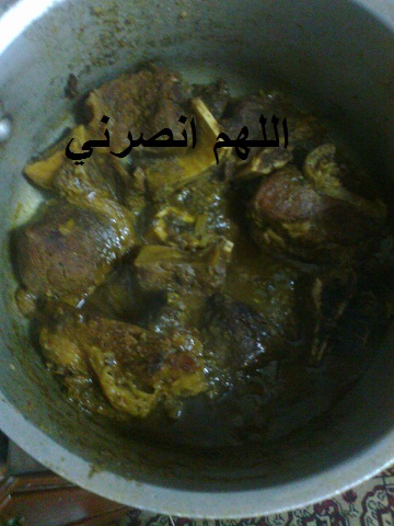 خليه يغلي بلا متشحريه باش اللحم يشرب العطرية في الطياب وميجيش ناشف
