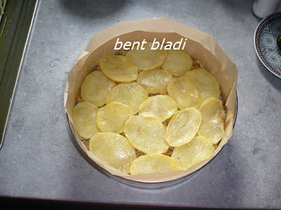 ثم طبقة اخرى من البطاطا وفوقها الباقي من الخليط