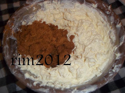 تطرب الزبدة مع السكر مع اضافة الزيت بالتدريج حتى الحصول على كريمة